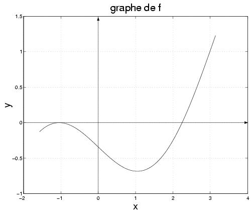 2. Ecrire la méthode de Newton pour la fonction f. A l'aide du graphe de la fonction f, déduire l'ordre de convergence de la méthode pour les deux zéros.