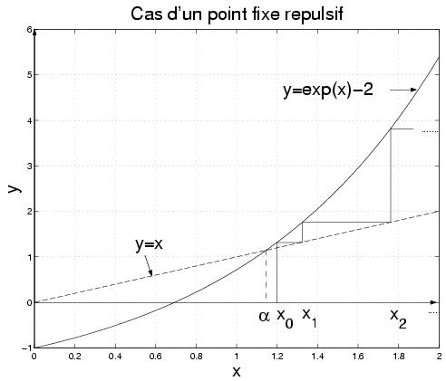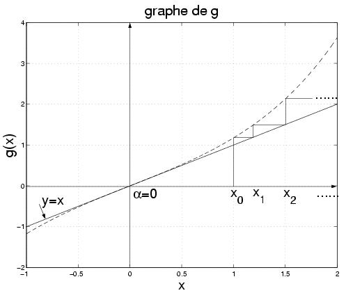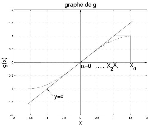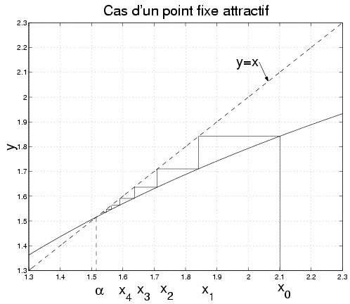 Donc la suite (x n) est décroissante et minorée par alpha, ce qui montre qu'elle est convergente. Comme x n+1=g(x n) et comme g est continue, (x n) converge vers l'unique point fixe alpha de g. On remarque de plus que